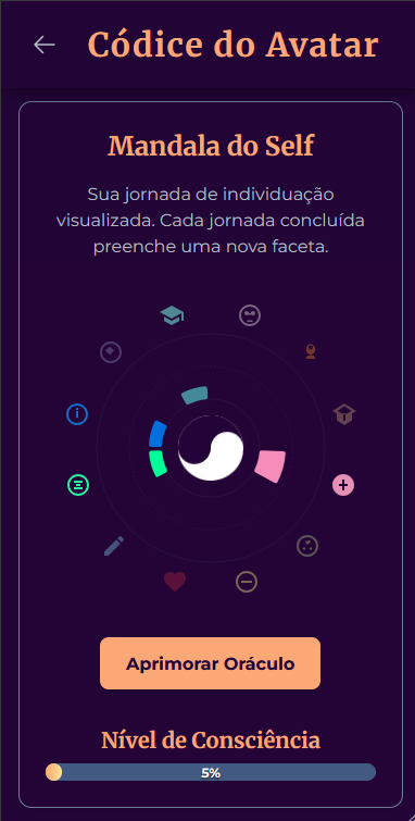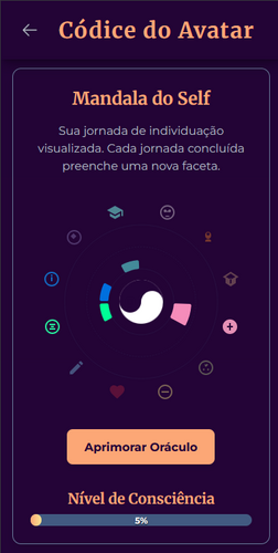 Inspirado na psicologia de Jung, este aplicativo é um guia para a sua jornada de autoconhecimento. Mapeie seus arquétipos dominantes, enfrente suas sombras em missões gamificadas e equilibre sua psique para forjar uma personalidade mais autêntica e unificada.